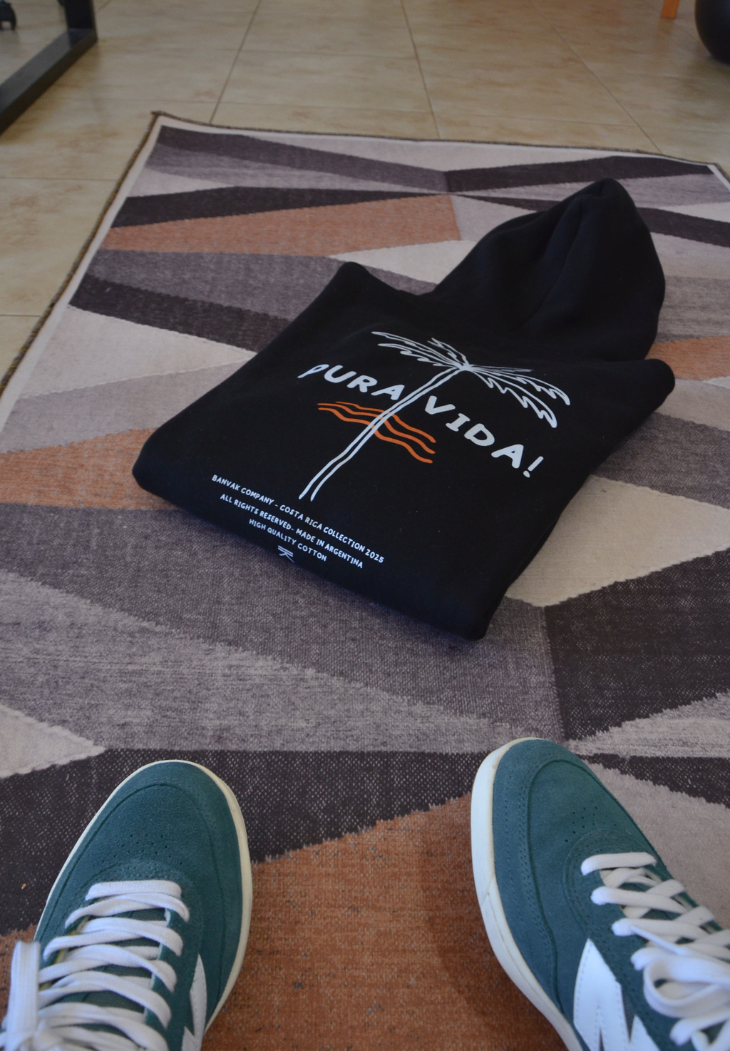 Buzo canguro con capucha de friza premium color negro, una prenda super calida y de máxima suavidad. Es de una tela muy gruesa y pesada, por lo que te abrigará muy bien.